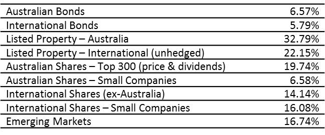 Major Asset Class Returns 2012 (in Australian Dollars)
